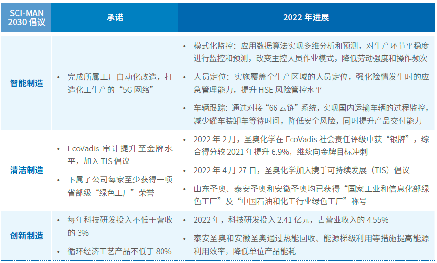 可持續(xù)發(fā)展已經(jīng)成為全球共識,是激發(fā)科技創(chuàng)新,促進(jìn)綠色發(fā)展,推動(dòng)化工企業(yè)實(shí)現(xiàn)高質(zhì)量發(fā)展的必然選擇。圣奧化學(xué)秉承“客戶導(dǎo)向、創(chuàng)新與持續(xù)改進(jìn)、開放與關(guān)懷、團(tuán)隊(duì)協(xié)作、承擔(dān)責(zé)任與敬業(yè)”的核心價(jià)值觀和“極致、綠色”的創(chuàng)新發(fā)展觀,通過積極構(gòu)建以“Smart Sennics”為核心的數(shù)字化、智能化、服務(wù)化戰(zhàn)略轉(zhuǎn)型升級目標(biāo),以“引領(lǐng)全球聚合物添加劑行業(yè)的綠色可持續(xù)發(fā)展”為使命,以智能制造為航標(biāo)、以清潔制造為路徑、以創(chuàng)新制造為驅(qū)動(dòng),全面落實(shí)“SCI-MAN 2030”倡議,向“成為全球聚合物添加劑用戶的最優(yōu)選擇”的企業(yè)愿景持續(xù)邁進(jìn)。